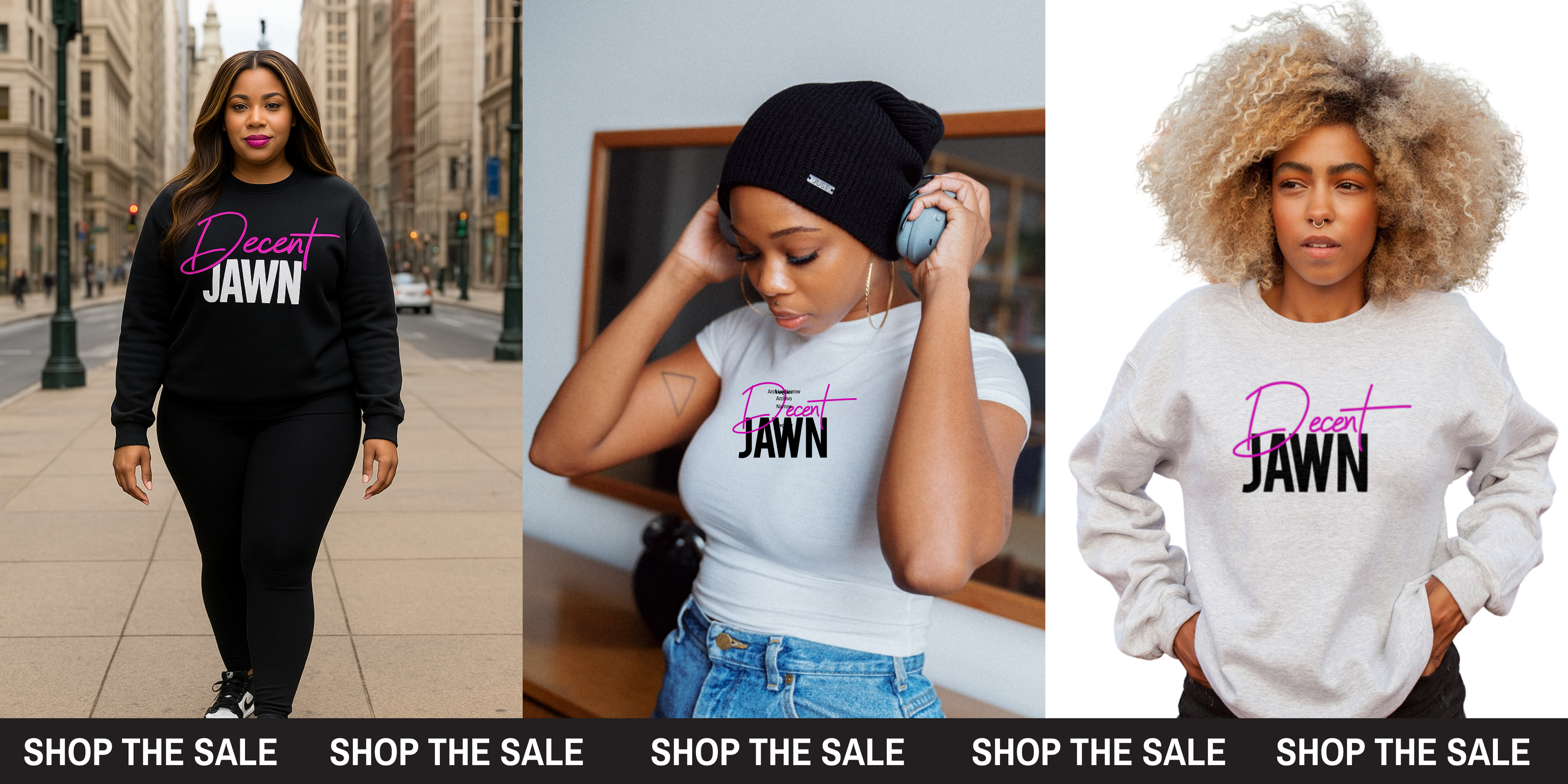 Decent Jawn is more than just a clothing brand, it's a love letter to the city that raised me. Whether you're still reppin' Philly or have taken its grit with you on your journey, our pieces are designed for those who grind to achieve success. Inspired by the city's iconic slang, Decent Jawn embodies the grit, resilience, and culture that make Philly one-of-a-kind. We create apparel that speaks to those who wear their hustle like a badge of honor, showing the world what it means to stay real, no matter where life takes you.